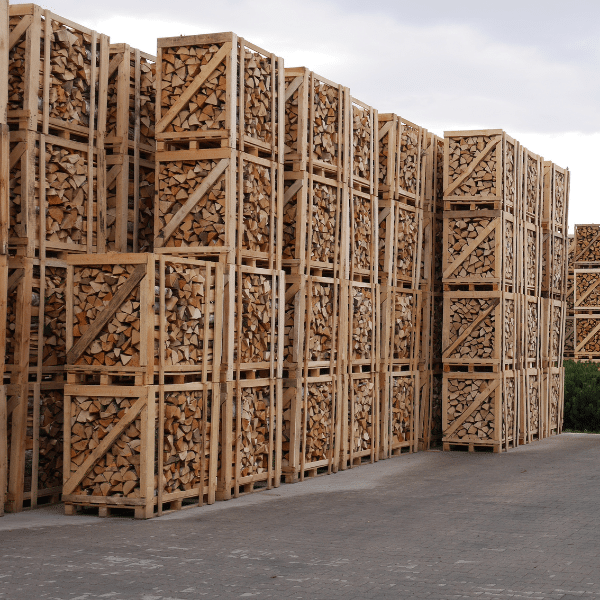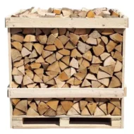 Paleta suchego drewna z brzozy o pojemności 1 metra sześciennego Miękkie drewno brzozowe doskonale nadaje się do podtrzymywania płomieni w kominku, piecu lub palenisku. Jego łatwe zapalanie generuje szeroki płomień.
