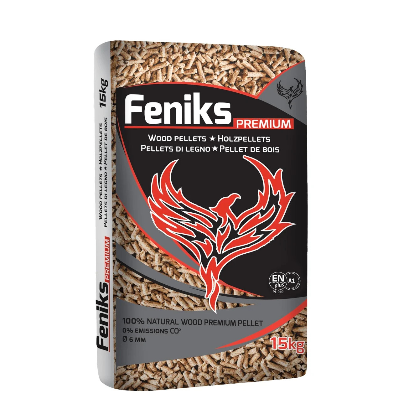 Pellet drzewny Feniks Premium ENplus A1 to ekologiczne i ekonomiczne paliwo, produkowane bezpośrednio przez Poli Trade Polska Sp. z o.o. Otrzymywane z naturalnie wysuszonych trocin sosnowych, surowiec poddawany jest silnemu naciskowi, zapewniając skoncentrowaną energię o doskonałych właściwościach opałowych (17,98 MJ/kg) oraz niskich zawartościach popiołu (0,3%) i wilgoci (5,71%). Przeznaczone do różnych zastosowań, od domów jednorodzinnych po instalacje przemysłowe, gwarantuje całkowity brak dodatków chemicznych, co czyni go ekologicznym wyborem do ogrzewania.